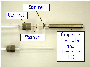 If using the TCD, the graphite ferrule and sleeve for TCD is used on the DET side. The back ring is not used. |