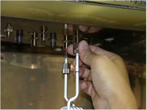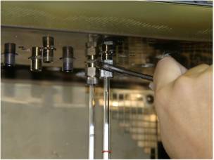 If the silicone O-ring is used, fix the connection by tightening it lightly. If the graphite ferrule is used, tighten it by a third or half a turn of the wrench to fix it.