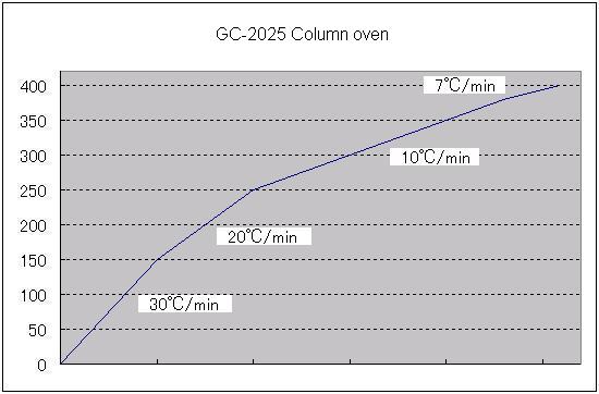 70°C/min up to 200°C, 50°C/min up to 350°C, 35°C/min up to 400°C