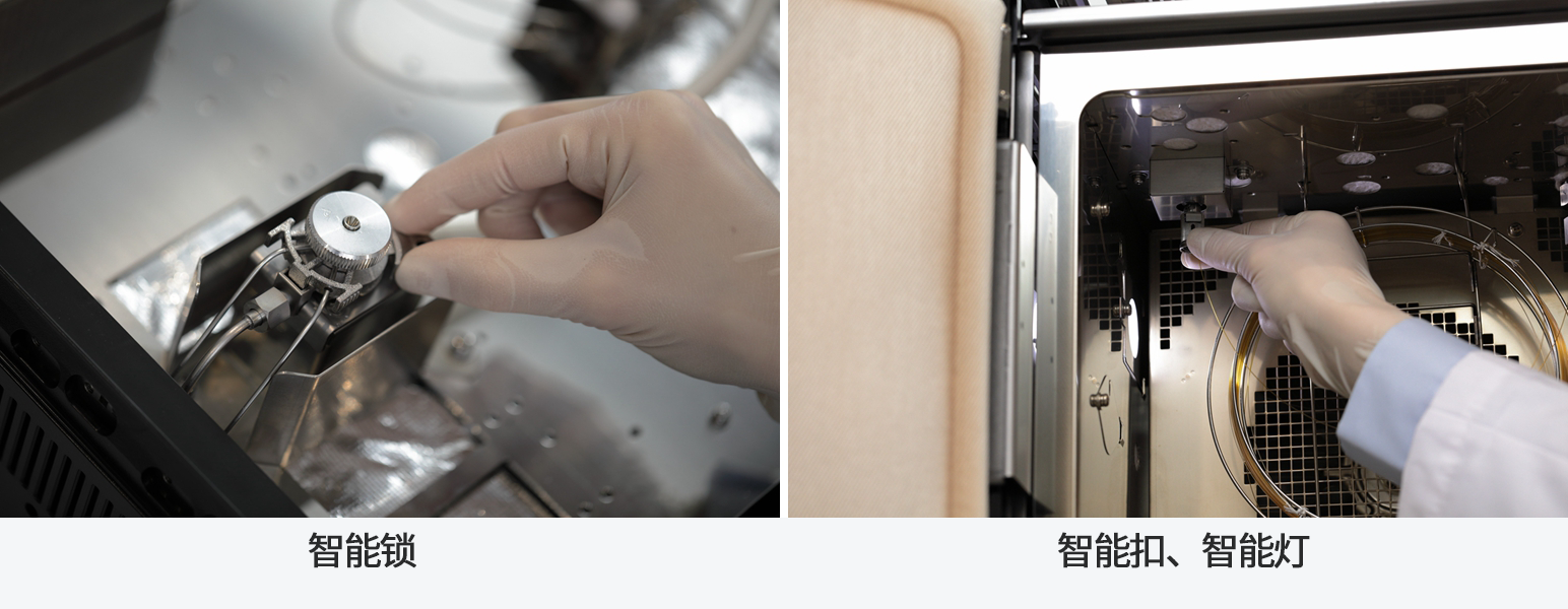 智能锁/智能扣:徒手即可完成进样口、色谱柱的安装和维护操作,仪器自动感知最佳气密位置,大幅简化了操作,提升分析体验。