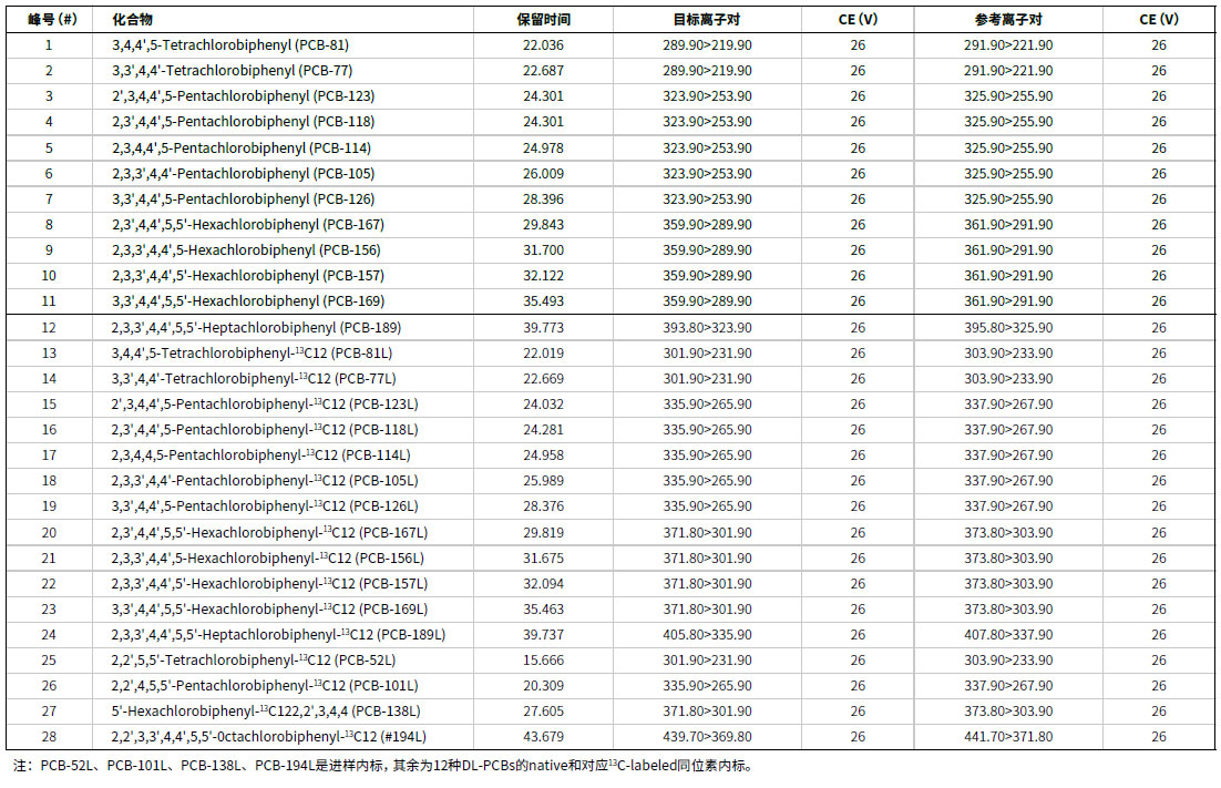 合作应用:GC-MS/MS法测定动物源性食品中类二噁英-多氯联苯GCMSMS-187