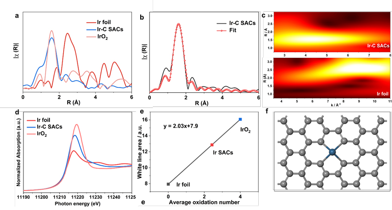 通过EXAFS、XPS分析测试表明,Ir-C催化剂中的Ir主要是以单原子的形式存在,无Ir纳米颗粒。同时由于Ir原子与C载体之间的强相互作用,使Ir原子的电子结构发生了很大的变化,从而出现缺电子性质(Ir+)。特殊的几何结构和电子结构可能赋予Ir-C SACs具有优异的甲醇反应性。