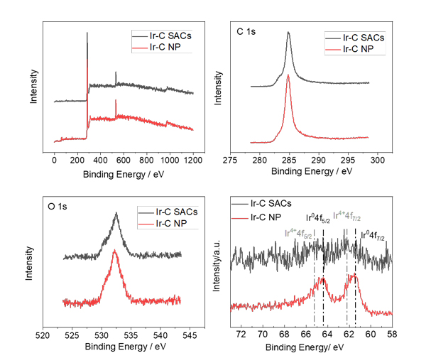 图4 Ir-C单原子催化剂、Ir颗粒催化剂XPS谱学测试