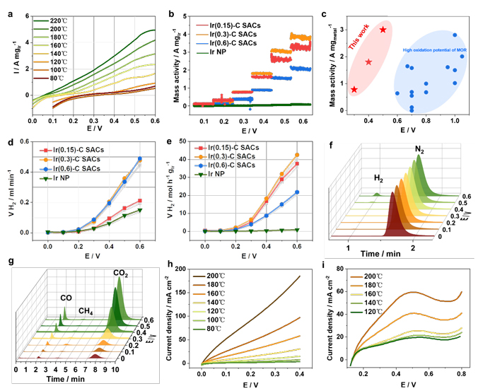 图5 Ir-C SACs和参比样品的甲醇氧化性能测试及在线产物分析