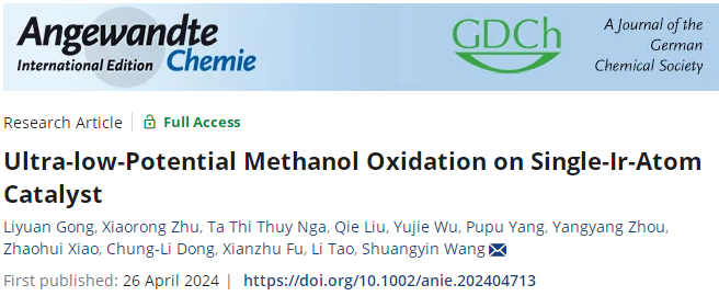 | 文献题目 | Ultra-low-Potential Methanol Oxidation on Single-Ir-Atom Catalyst |