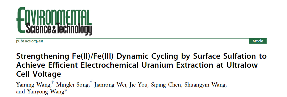 | 文献题目 | Strengthening Fe(II)/Fe(III) Dynamic Cycling by Surface Sulfation to Achieve Efficient Electrochemical Uranium Extraction at Ultralow Cell Voltage |