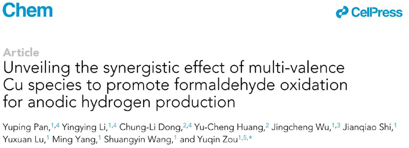 | 文献题目 | Unveiling the Synergistic Effect of Multi-valence Cu Species to Promote the Formaldehyde Oxidation for Anodic Hydrogen Production |