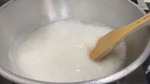 - 向洗净的琼脂中加水,加热使其溶解,随后加入砂糖熬煮收汁。