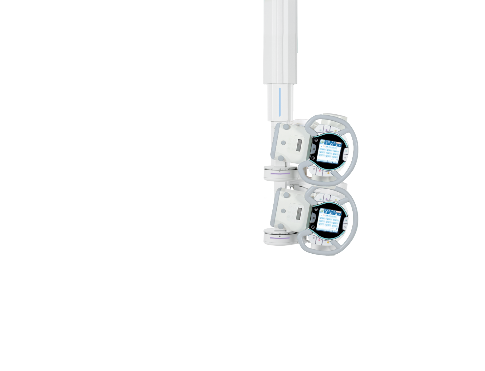 按下遥控器上的一个按钮,即可将悬吊式X射线球管支架移动至预先登记患者需要检查的位置,松开按钮后球管马上就可停止移动。