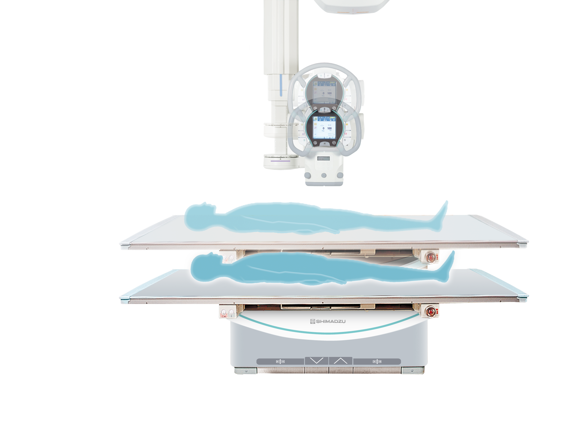 摄影平床平板单元的纵向运动与球管支架位置之间可以轻松联动。此外对于X射线倾斜摄影还可按照APR来控制X射线投照范围和角度。