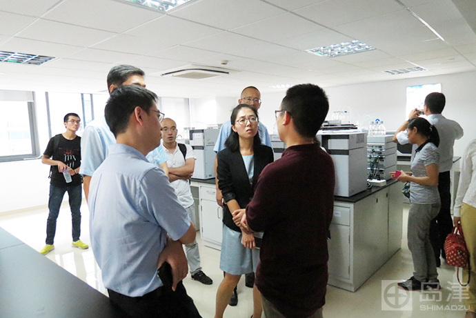 中国医药工业研究总院陆伟根副院长和岛津分析计测事业部吴彤彬事业部长 揭牌仪式结束后,与会嘉宾共同参观了中国医药工业研究院—岛津联合实验室,实验室内备有多台LCMS-8060超快速三重四极杆色谱质谱联用仪, GCMS-QP2020+HS-20Trap单四极杆型气相色谱气质联用仪,Nexera UC在线SFE-SFC系统,Nexera LC-30A超快速液相色谱仪,GC-2010plus气相色谱仪,和FTIR,UV等。