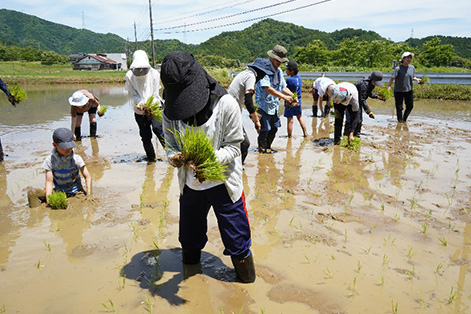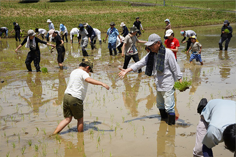 6月15日,我们在位于京都府北部绫部市的丹波西山株式会社稻田中,举办了插秧体验活动。包括海外员工及其家属在内,约40名岛津员工参与其中。大家走进稻田,亲手完成了一整片田地的插秧作业。